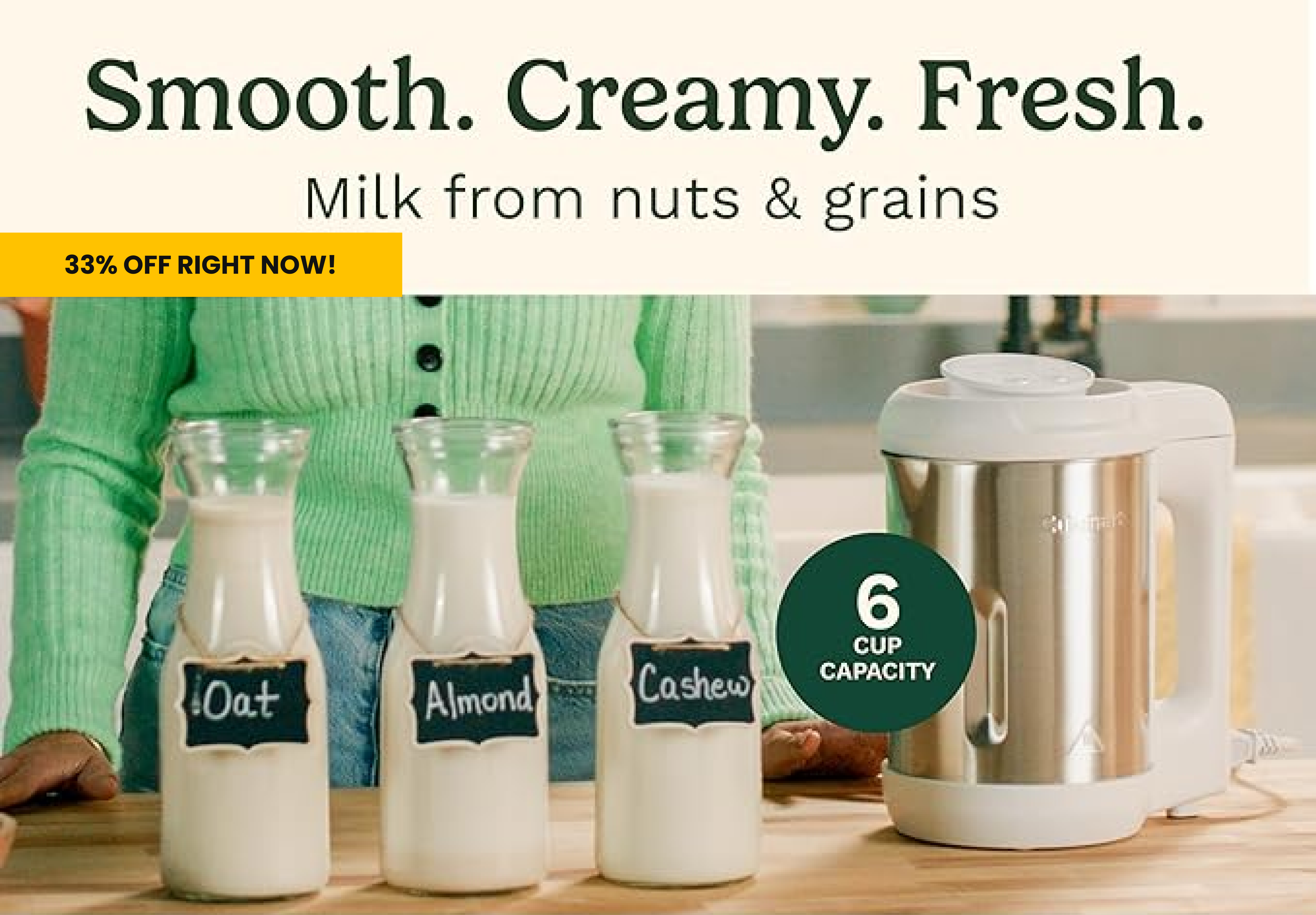 The Cashmere Nutmilk Maker handles the entire process automatically: grinding, blending, heating, and straining to produce perfectly smooth milk without the grainy texture or pulp. Create customized flavors, control ingredients completely, and save money while enjoying fresher, better-tasting plant milk.