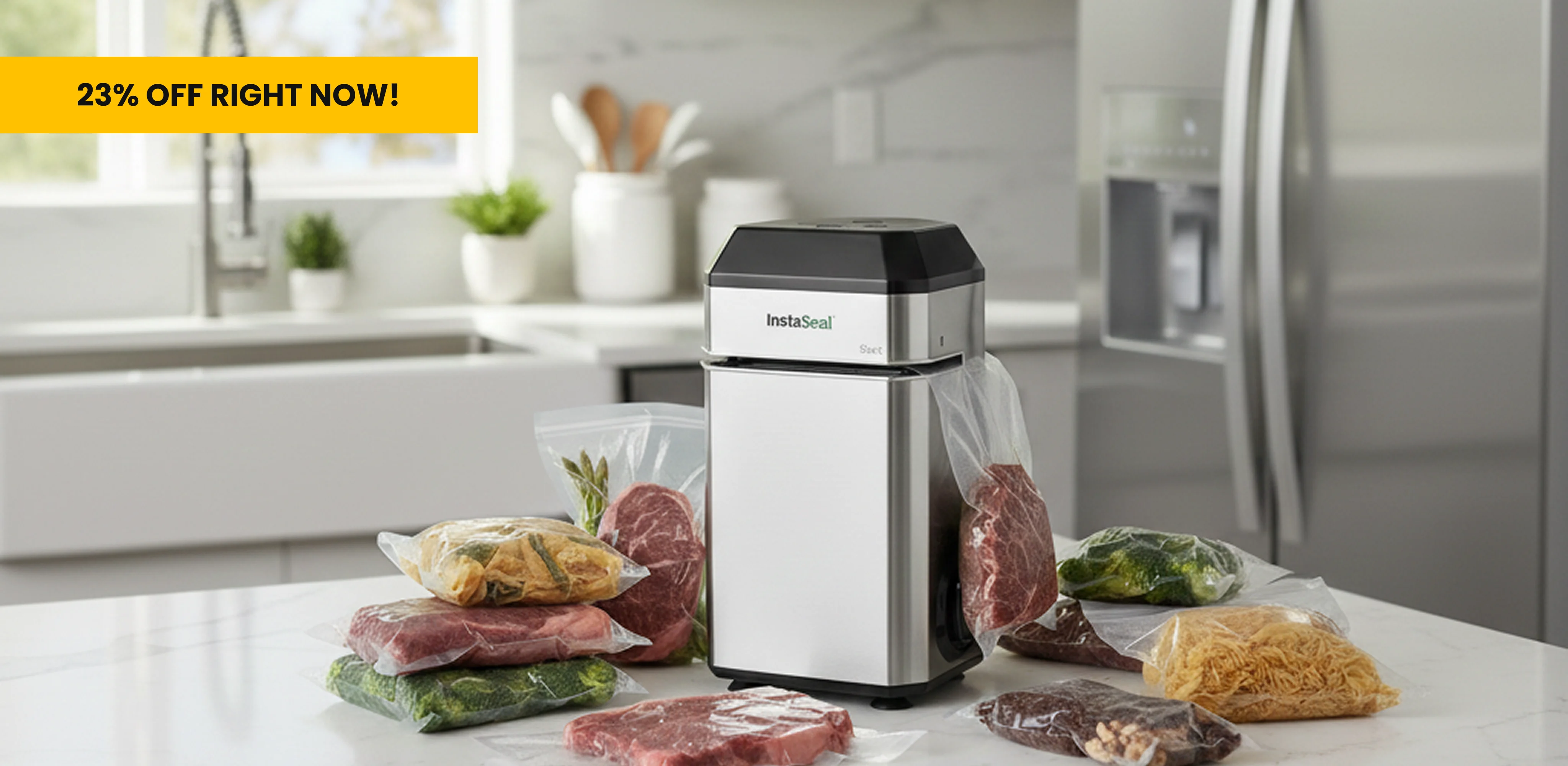 Food going bad before you can eat it? Freezer burn ruining your meal prep efforts? InstaSeal's patented upright vacuum sealer keeps food fresh up to 5x longer while taking up minimal counter space.