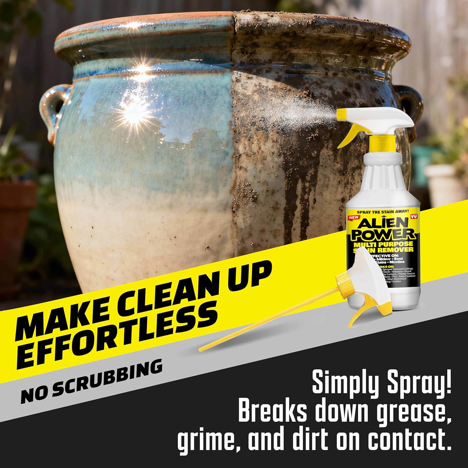 Alien Power Instant Stain Remover Spray for Bathroom & Household Surfaces, No-Scrub Formula for Tiles, Grout & Washing Machines (2 Packets + 24oz Spray Bottle)