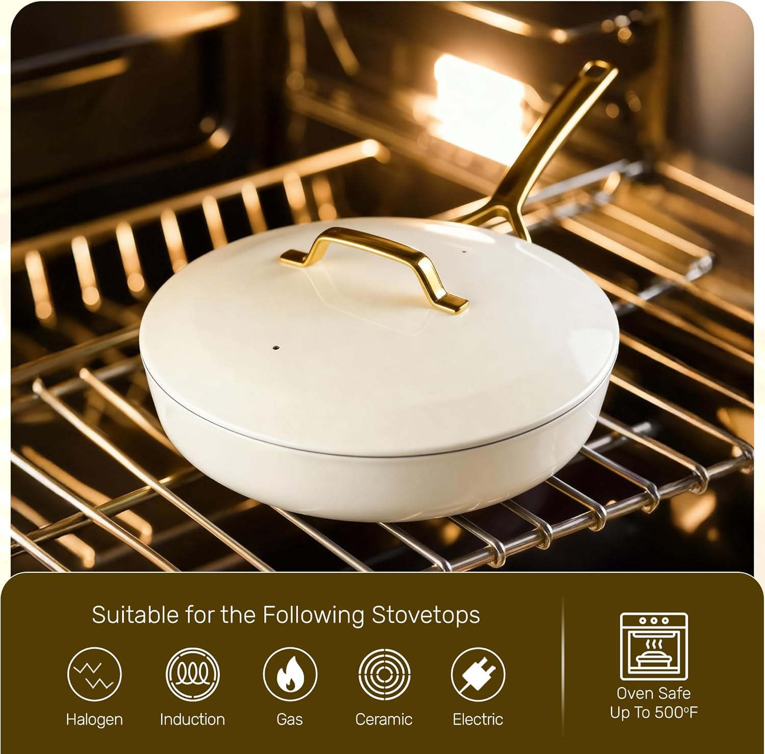 - EASY TO CLEAN: Whether you're using a skillet or a saucepan, the nonstick ceramic coating lets food slide right off. Less oil needed, less mess to clean—just a quick wipe or rinse and you're done.