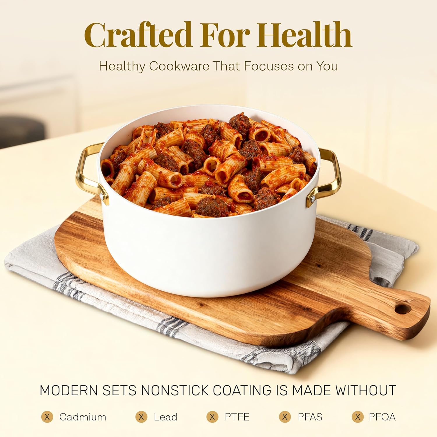 - MADE WITH NON TOXIC MATERIALS: Made without PFOA, PFOS, PFTE, PFAS, lead, or cadmium, this cookware set is safe and non toxic, so you can prepare your favorite meals knowing your food stays pure and clean.